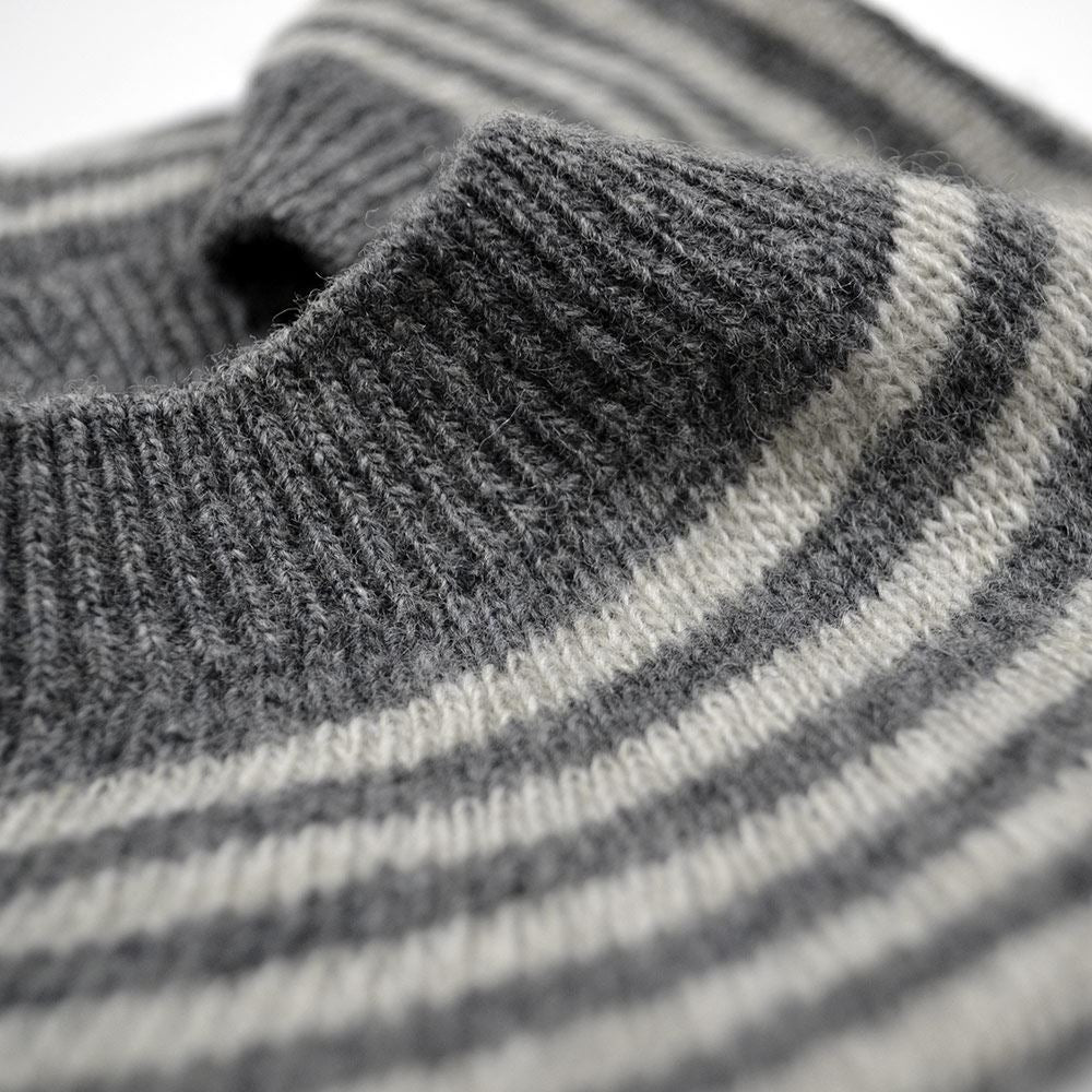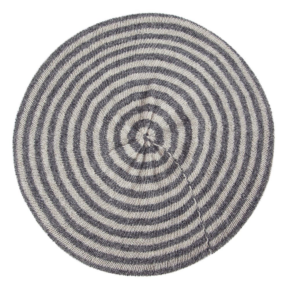 Lambswool Striped Beret - Derby Grey / Silverbirch