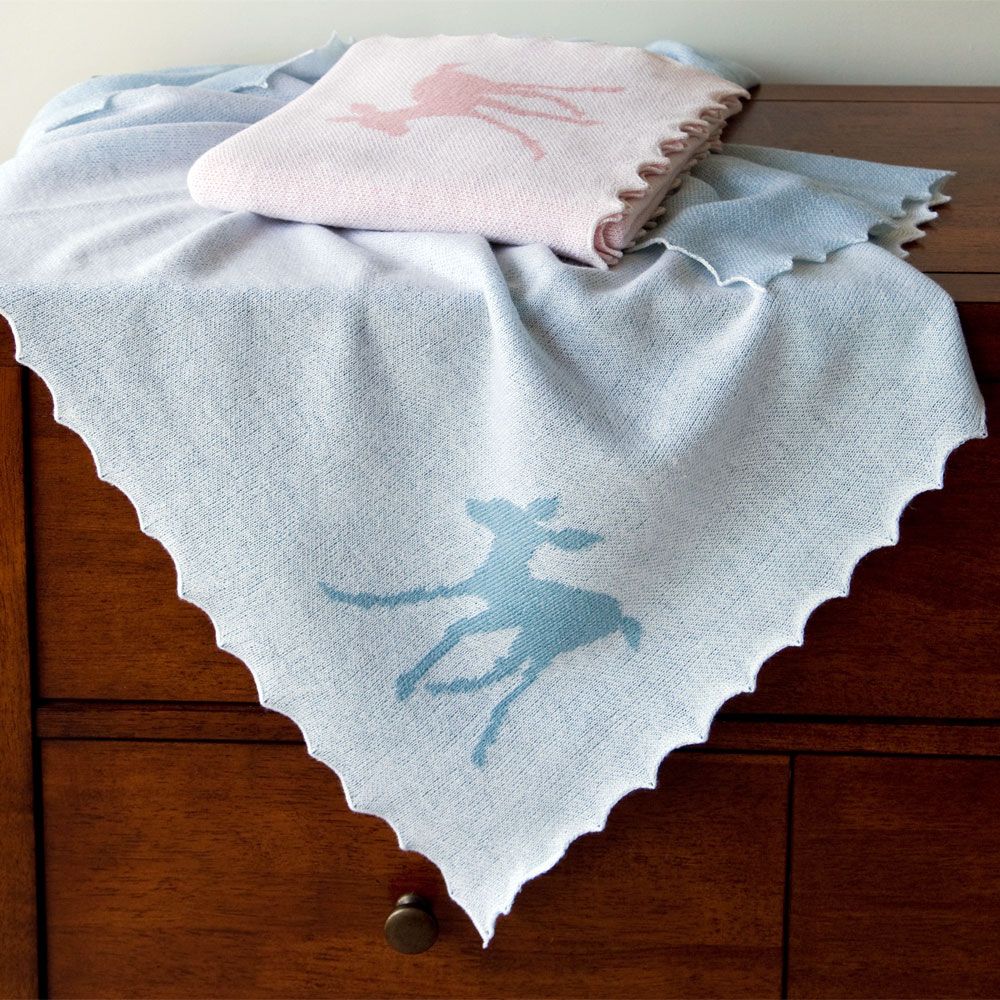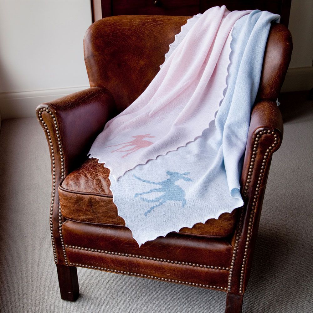 Presented in one of our beautifully embossed white gift boxes. This soft 100% pure merino wool pink baby shawl is knitted in the adorable G.H.Hurt & Son Fawn design. A perfect gift to celebrate the birth of a newborn baby or for a baby shower. This versatile blanket will keep baby snug and warm. Each shawl is hand-finished with a scalloped edge. Size: 102 x 102cm approx. Made in England.